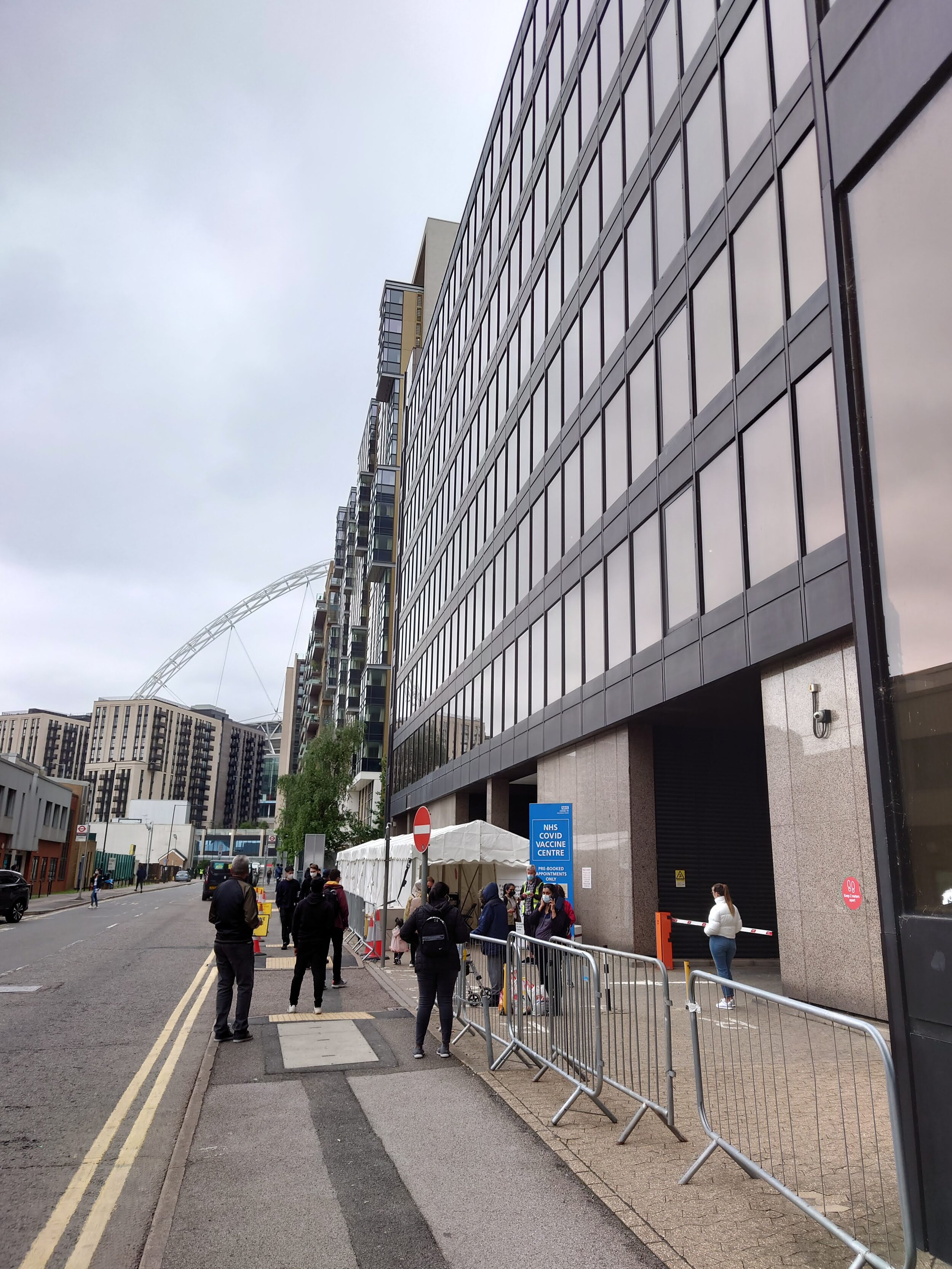 I don’t care how cringe or sad this sounds – I was quite excited to get my first dose. After a healthy 90 minute walk from home to Wembley, I arrived at the dedicated vaccination centre which was housed in a disused office block a few minutes walk from Wembley Park and Stadium. Signage to the vaccine centre was very clear and could be seen all around.