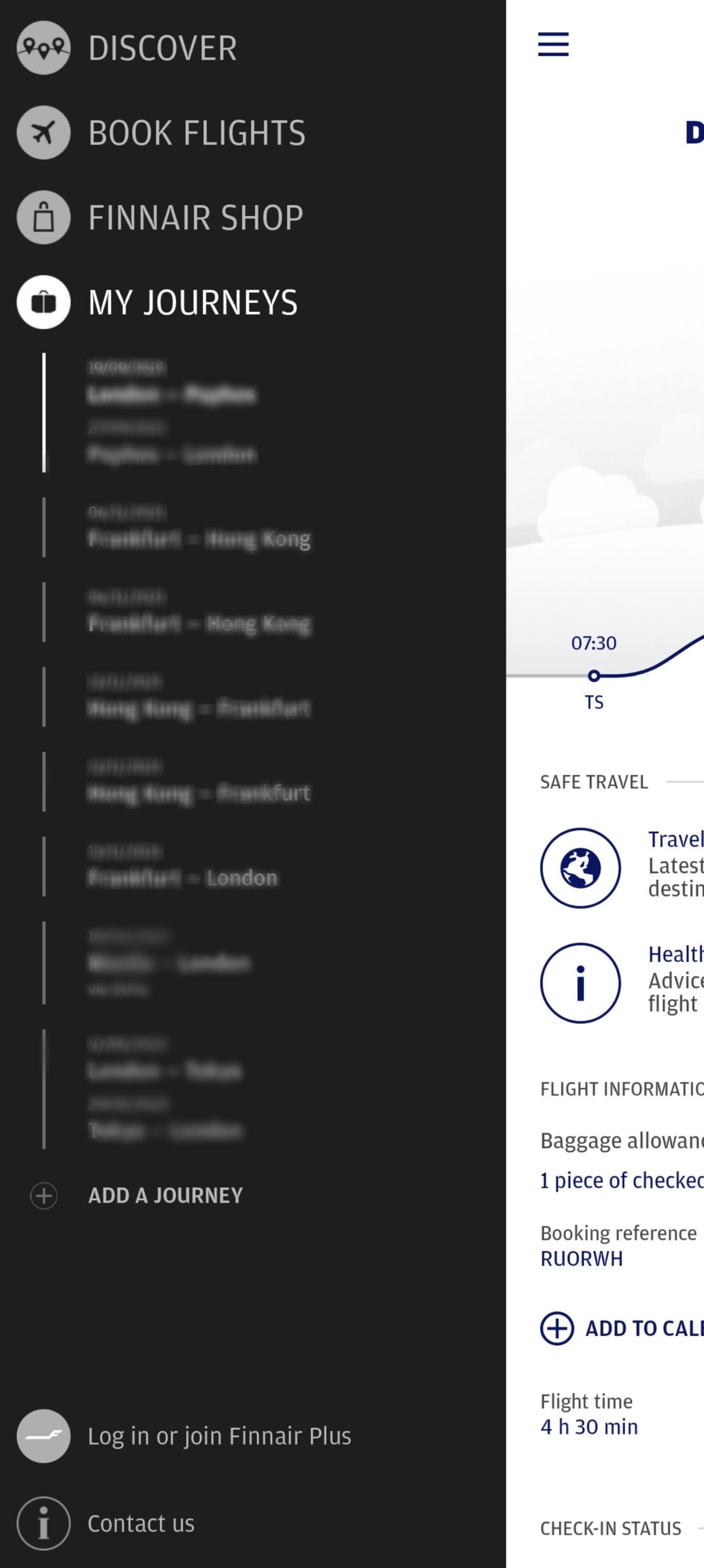 Even if all these bookings were booked separately, they can all be viewed intuitively on the Finnair app – making it simple & quick to keep track of where you’re at. Its as simple as inputting your booking references/PNR and surname onto the app and it’ll pop up immediately. This streamlines the travel experience on complex itineraries, and gives you a graphical view of your journey. An example of this is showing connections at hub journeys in a timeline view that is easy to interpret. Although it cannot process and hold boarding passes for partner airlines, it is able to link you out to their websites for online check in.
