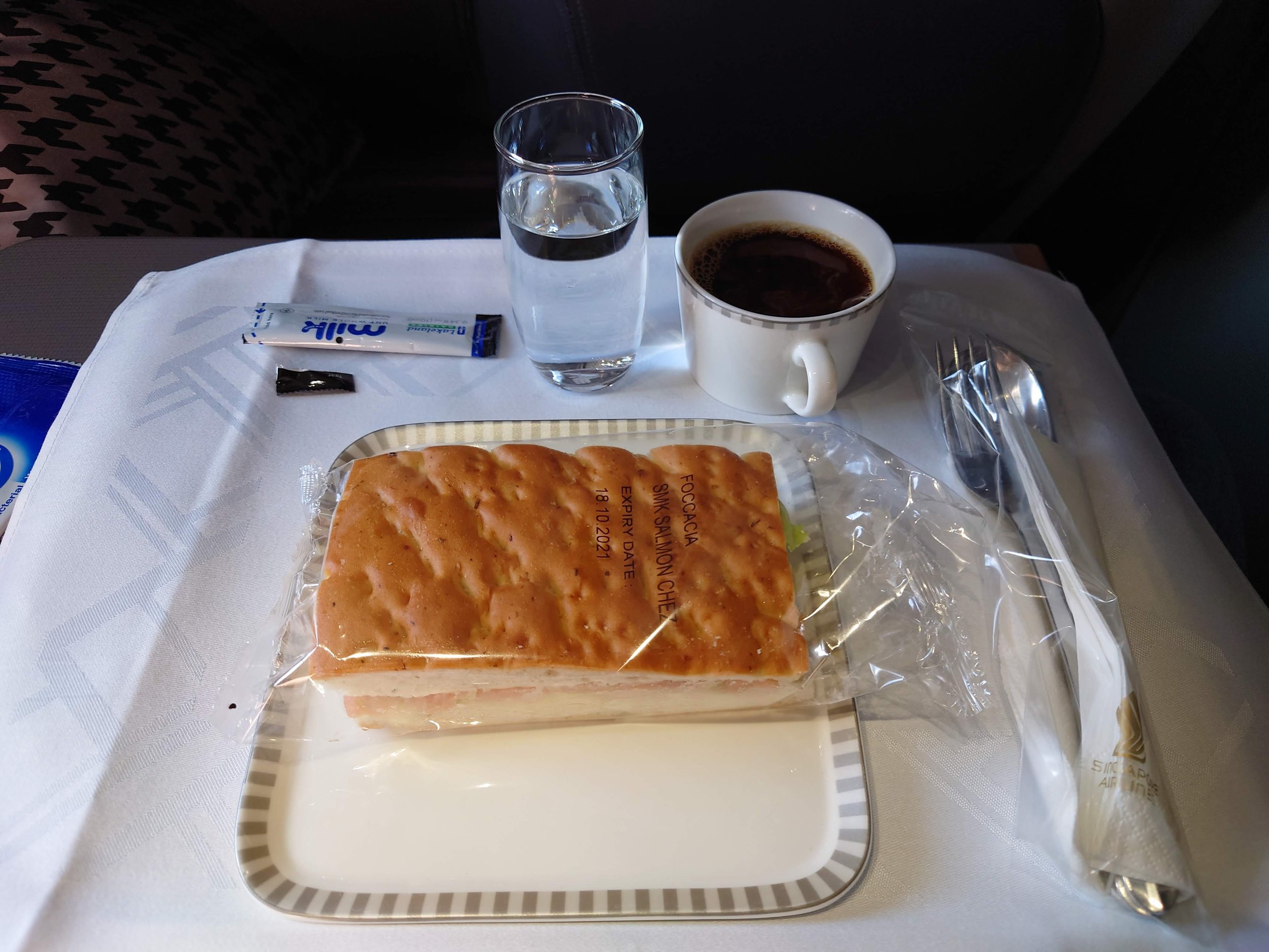 The Singapore Airlines food experience on this journey was subpar – and you will see a common theme throughout all the reviews of this flight. Singapore Airlines offers only a Smoked Salmon and Cream Cheese or Mushroom Ciabatta – tasty, but pretty poor for a premium airline. I understand that this is purely a tag-on flight and the passengers who are continuing on from the Singapore-Copenhagen sector will likely have already over-indulged – it would be better to offer a little more. Most European Business Class flights of a similar length would offer a hot meal – and I would argue that even British Airways Club Europe had a better meal service than Singapore Airlines.