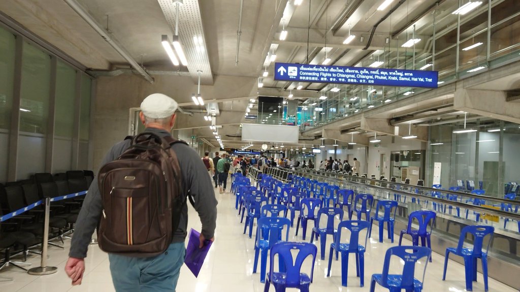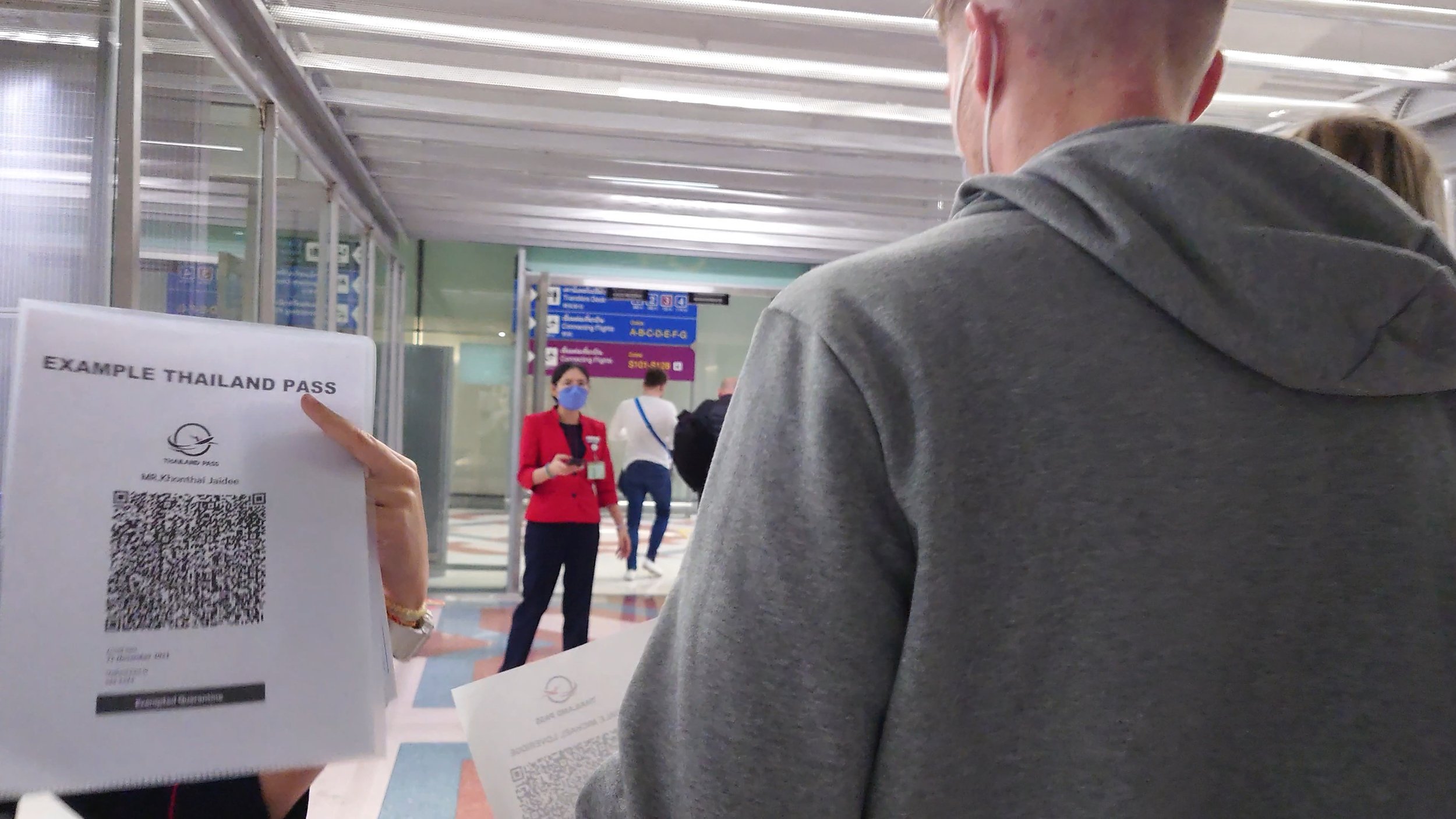As I noted in my previous article, having print outs of your documents is necessary. Make sure you’ve also got your original boarding pass stub, they’ll be needing that to view. Get these out and ready before disembarking the aircraft as you will be expected to give a glancing view of your Thailand Pass to a Thai Ministry of Health official at the jet bridge – doing so saves awkwardly getting them out of your bag later. Keep them handy though, as you’ll need it again.