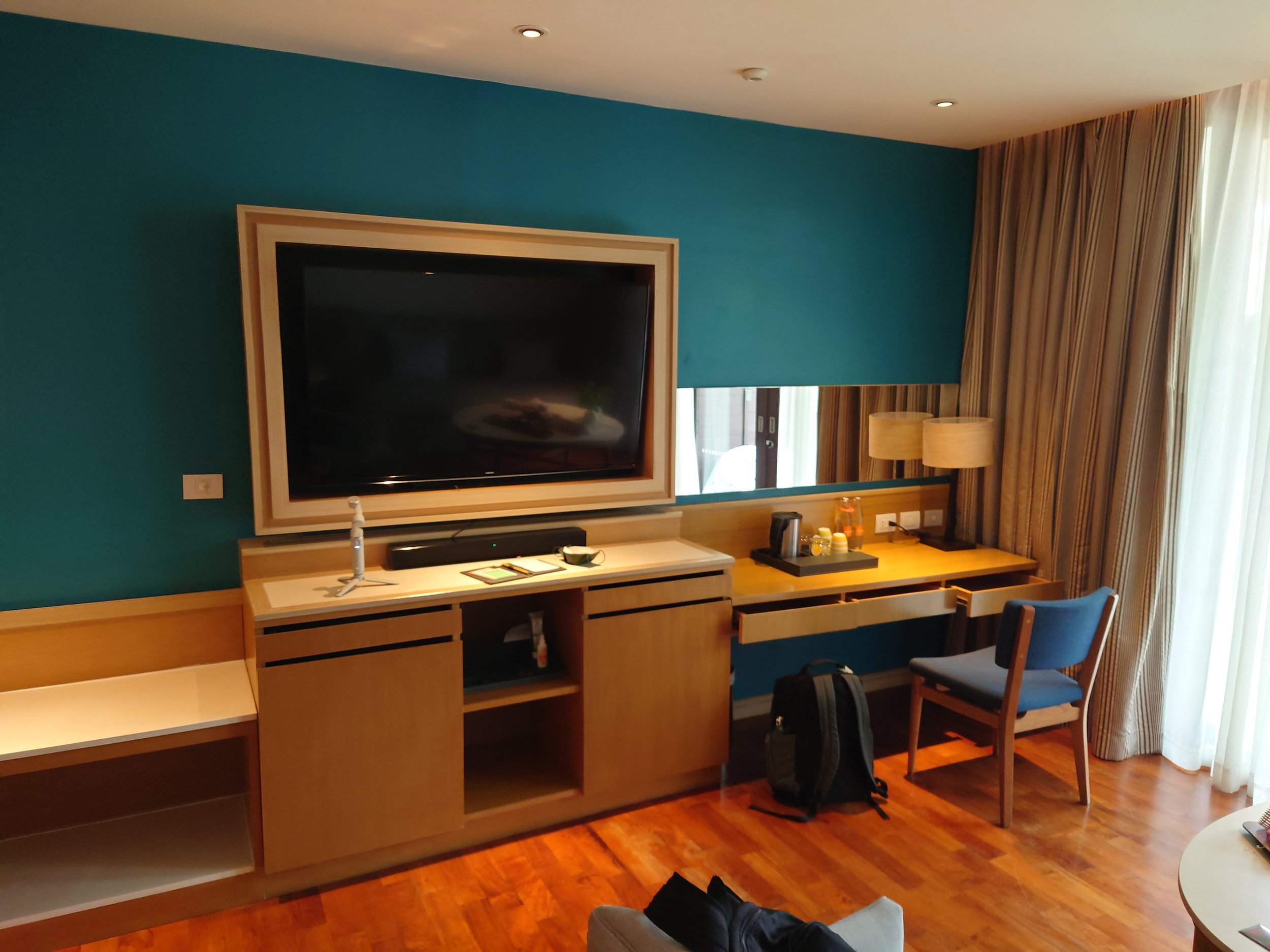 During our stay, we were offered a Ground Floor Grand Deluxe Ocean View room. At 45 sqm., the room is spacious and gives you plenty of room to move around if you wish to do so. It is clad in wood with splashes of turquoise and blue emulating the sea colours, which are pleasing to the eye. Although the furniture is of high quality the colours and some design does remind me of an Ikea-style which does not evoke the highest standard which you may expect at a 5-star hotel. It features an open plan lounge and sleeping area which leads onto the veranda or balcony with direct access to the pool and beach facilities, depending on which floor you are on.