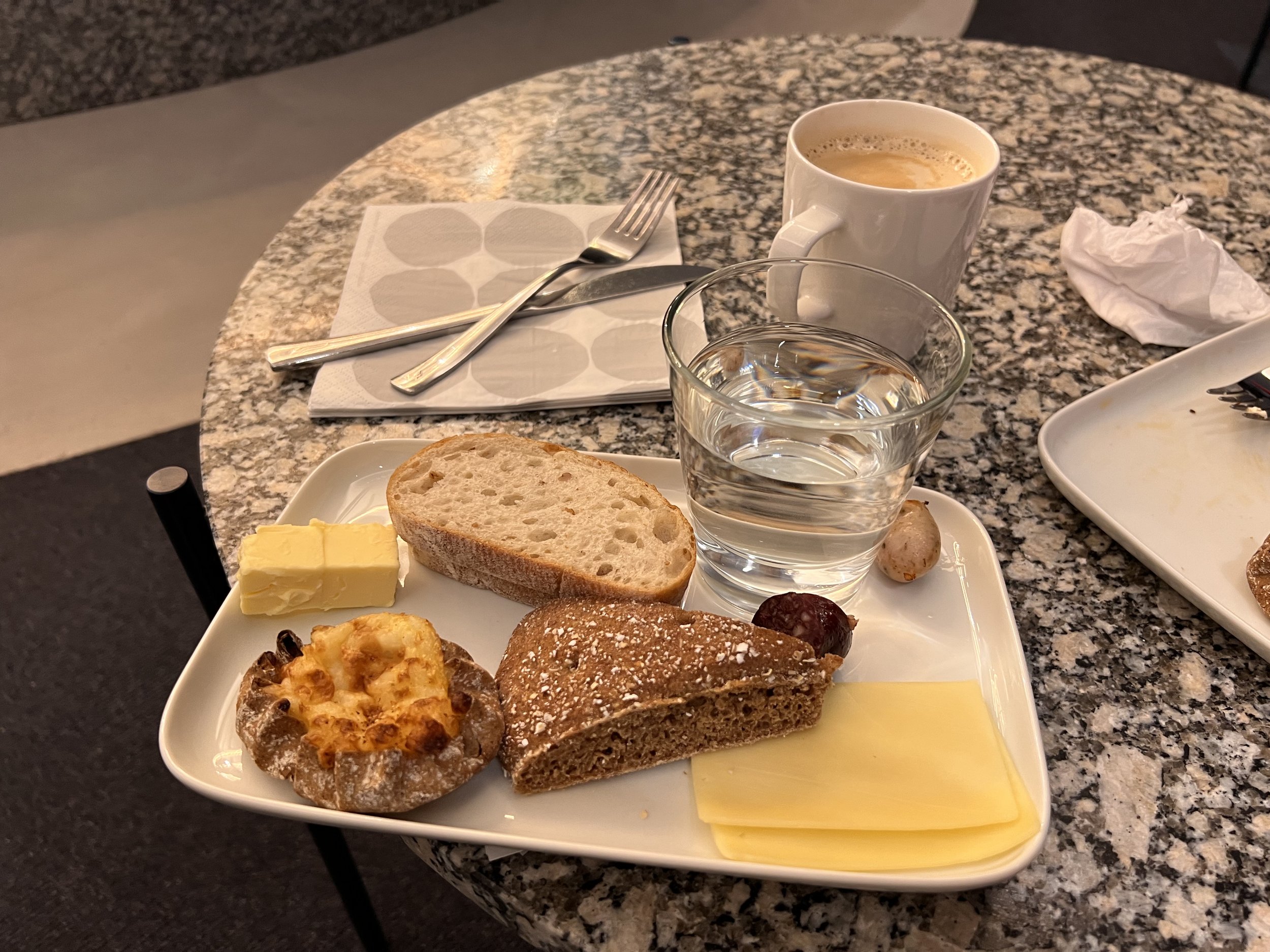While not the worst spread of food I’ve seen at a lounge, the breakfast offering at the Finnair Business Lounge is limited. The food itself tastes good but there just isn’t enough selection. This may be justified due to limited non-Schengen flights departing although with busy flights departing in the morning to London Heathrow, this must be improved. During our visit, breakfast consisted of:
