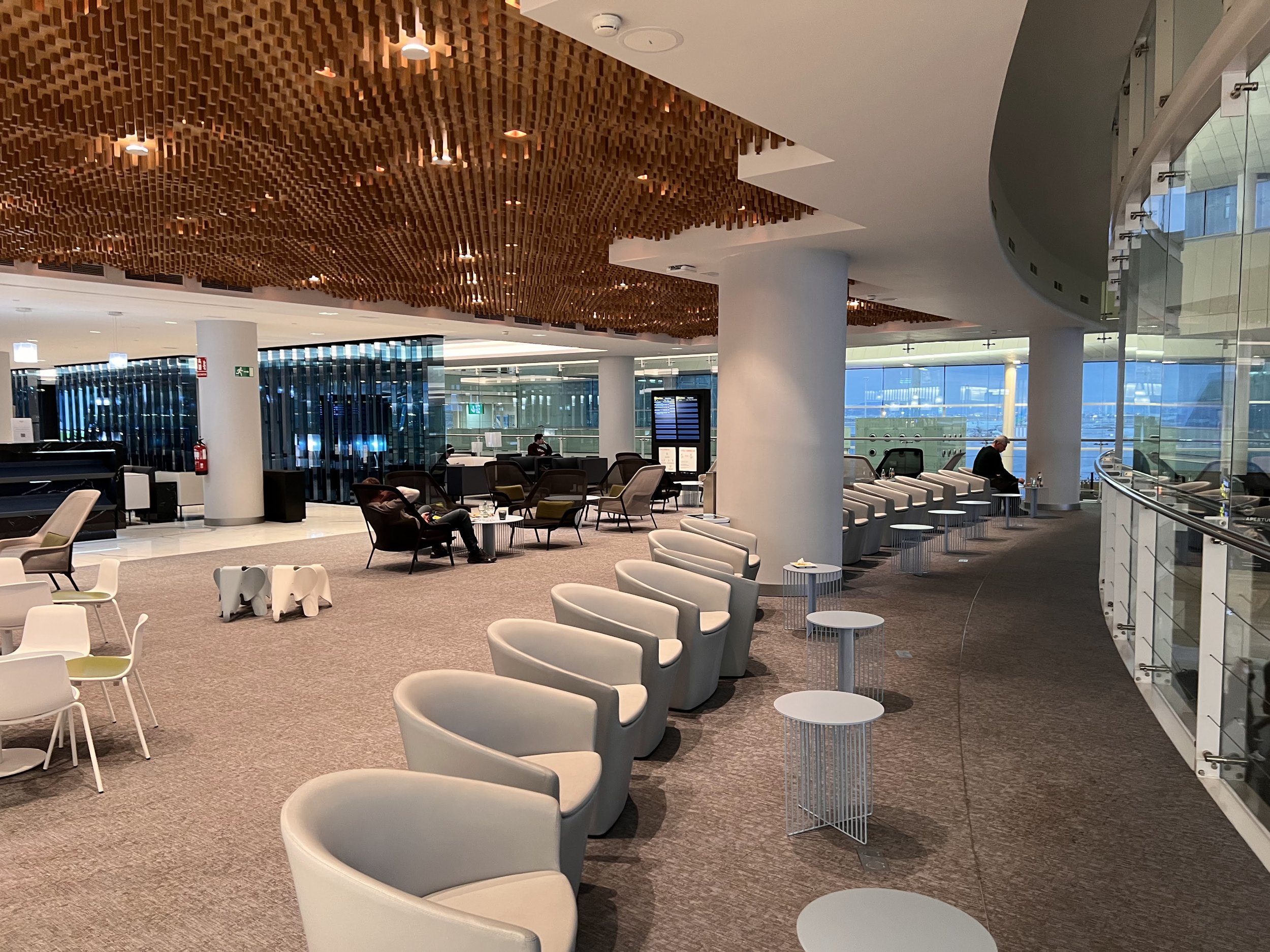 A huge selection of seating can be found around the lounge with almost all seats facing towards the windows which overlook the airport concourses – primarily looking over and above the Schengen Zone.