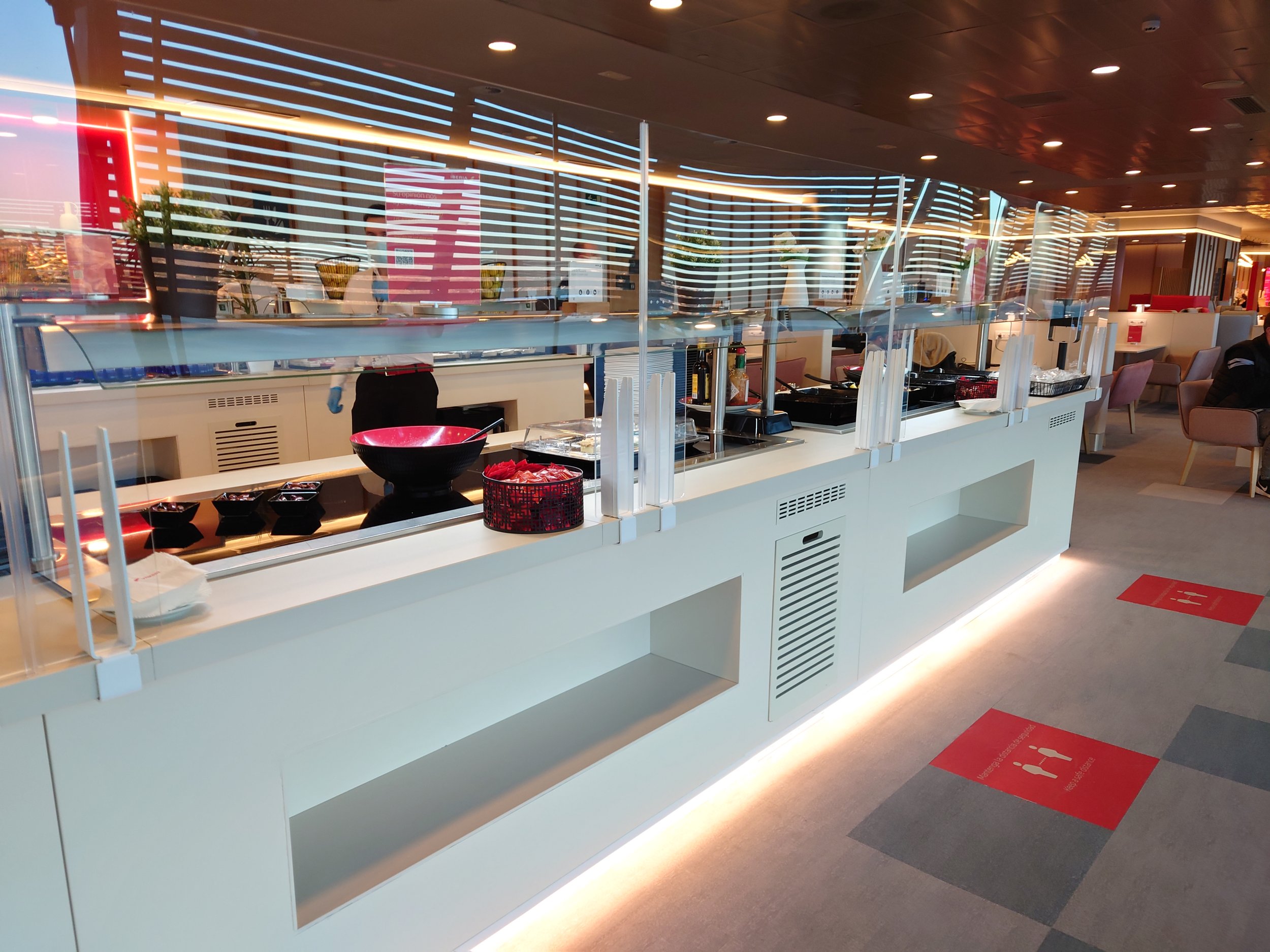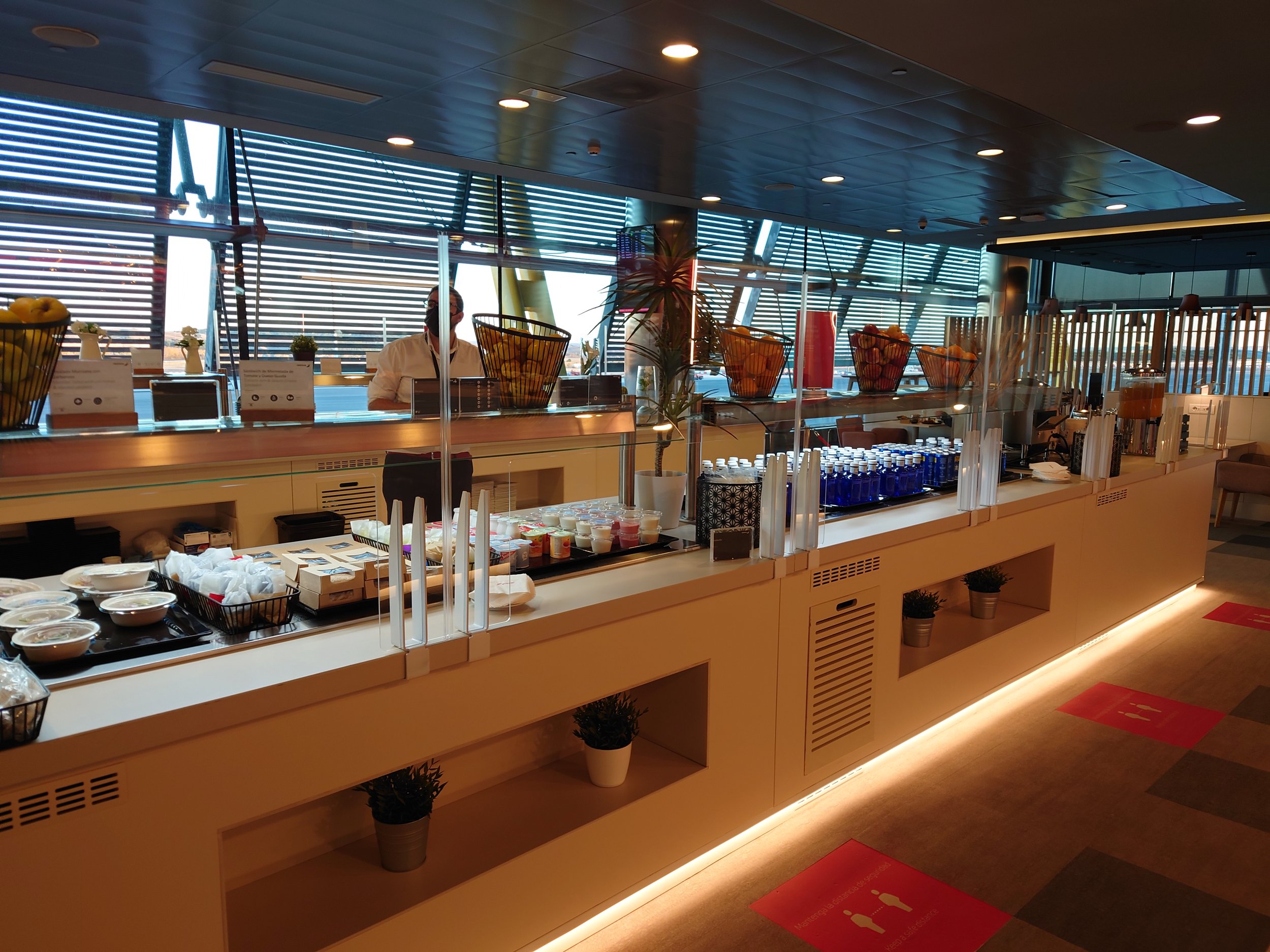 The Velázquez Premium Lounge is a long and open plan lounge that feels modern embracing accents of Iberia’s signature red colour. Prior to the pandemic, the two halves of the lounge effectively mirrored one another – offering buffet food service at both ends as well as a decent selection of drinks. On the right end of the lounge, you can find a premium bar and a la carte restaurant while the left end only features the buffet section as well as self-serve drinks.