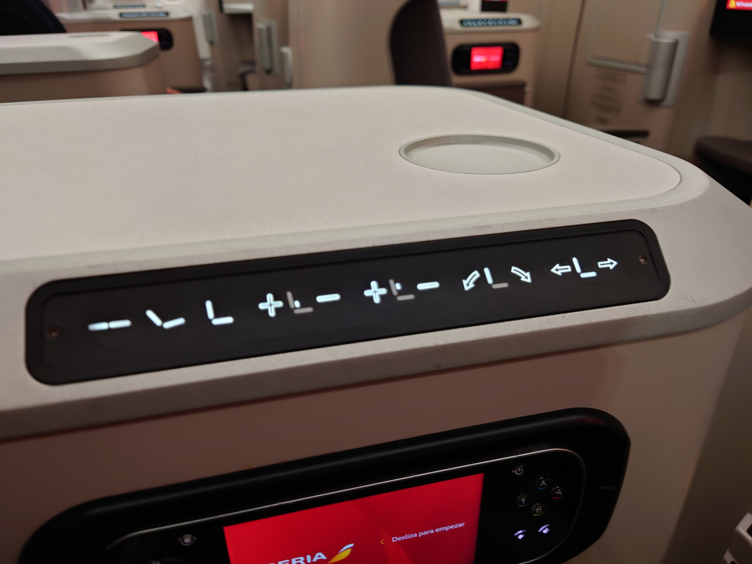 Speaking of inflight entertainment, this is almost identical to that found on British Airways Club Suite product – only with a red skin and Iberia branding. It’s a good and responsive system with decent content selection, including Spanish films, while the remote can display the map simultaneously to content being shown on screen.