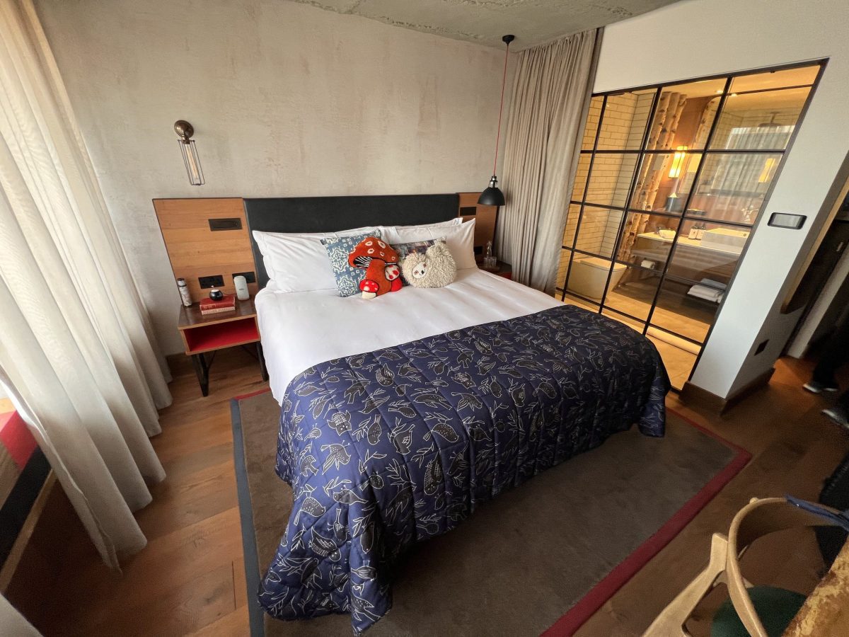 Our room during this stay was the Lookout King – 24 sq m rooms which provide excellent views across London. We checked in to our room at 13h30 having paid a premium of GBP 25 on top of the room rate (we needed to have guaranteed early access). At the centre of the room is a large King-size bed with high quality sheets as well as a richly coloured throw and a selection of friendly looking toys on it. Tables can be found on both sides of the bed with power outlets, USB ports, reading lights as well as a wireless Bluetooth speaker – a nice touch.