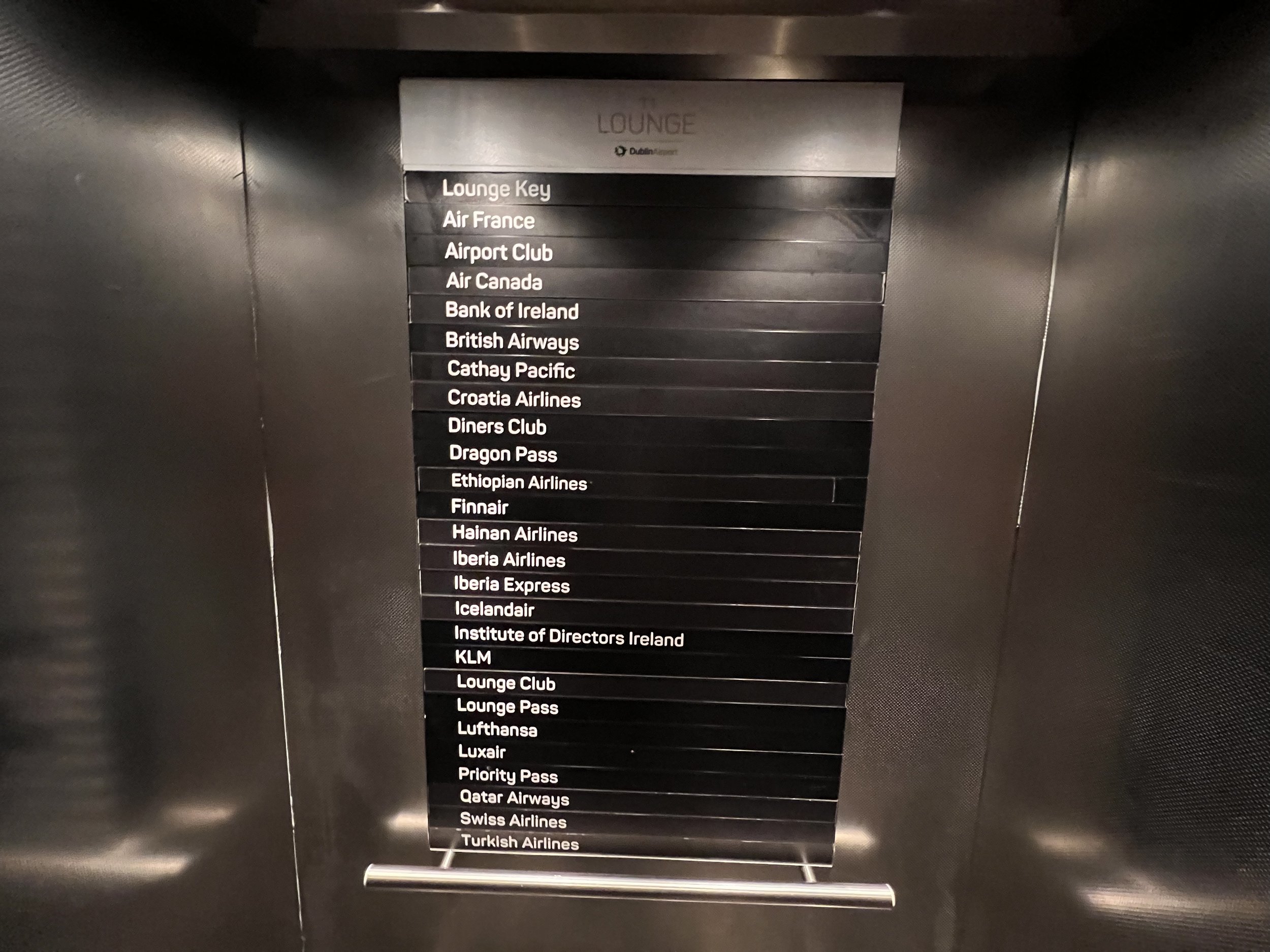 The lift displays all the airlines which can use the T1 Lounge but it’s worth noting that a number of these no longer serve Dublin post-Covid.