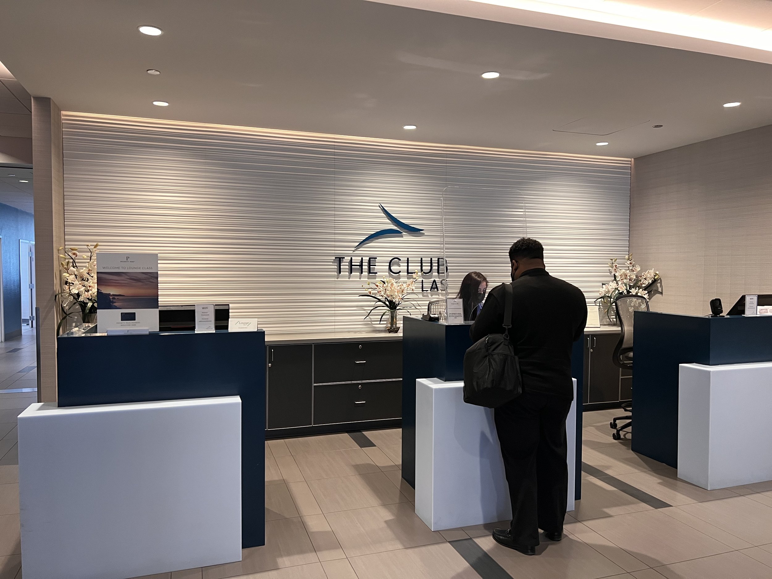 The Club has a modernly designed entrance with three desks to welcome guests. I headed here after being asked to return to the AmEx Centurion Lounge closer to my departure time.