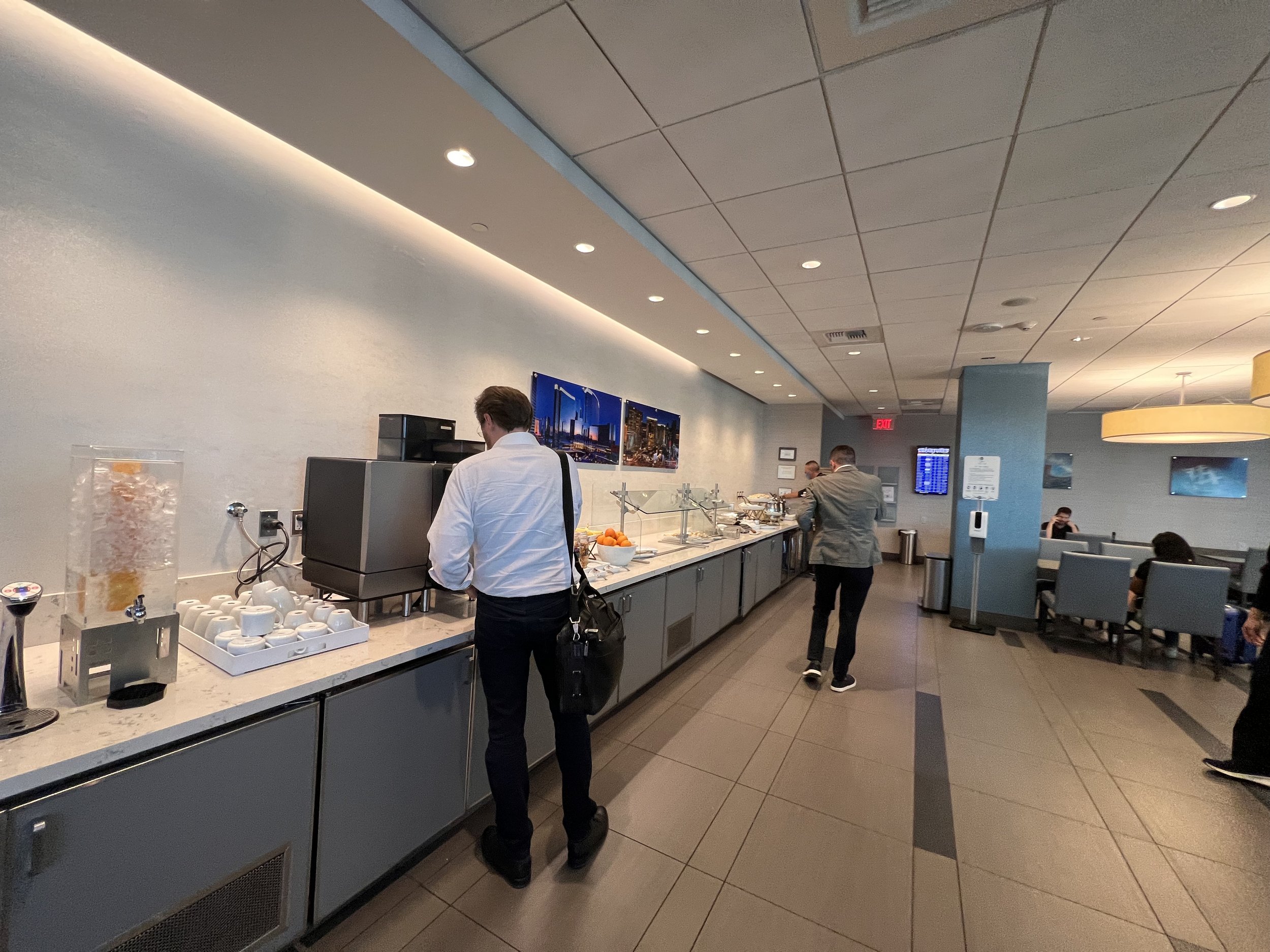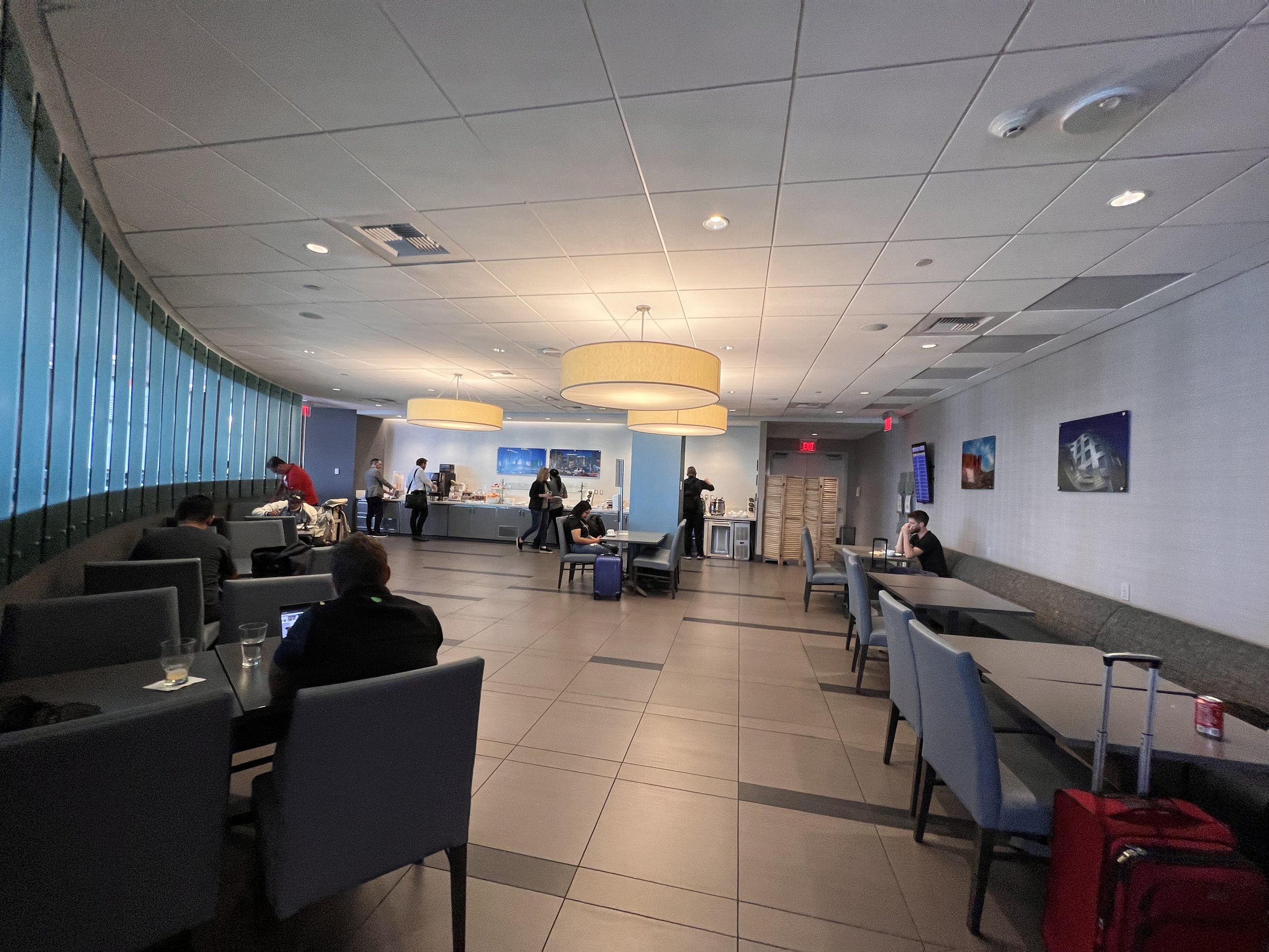 Some sporadic and limited seating can be found in the buffet zone. The concave shape of the lounge is a limiting factor in the Club Lounge LAS being able to properly make use of the space.