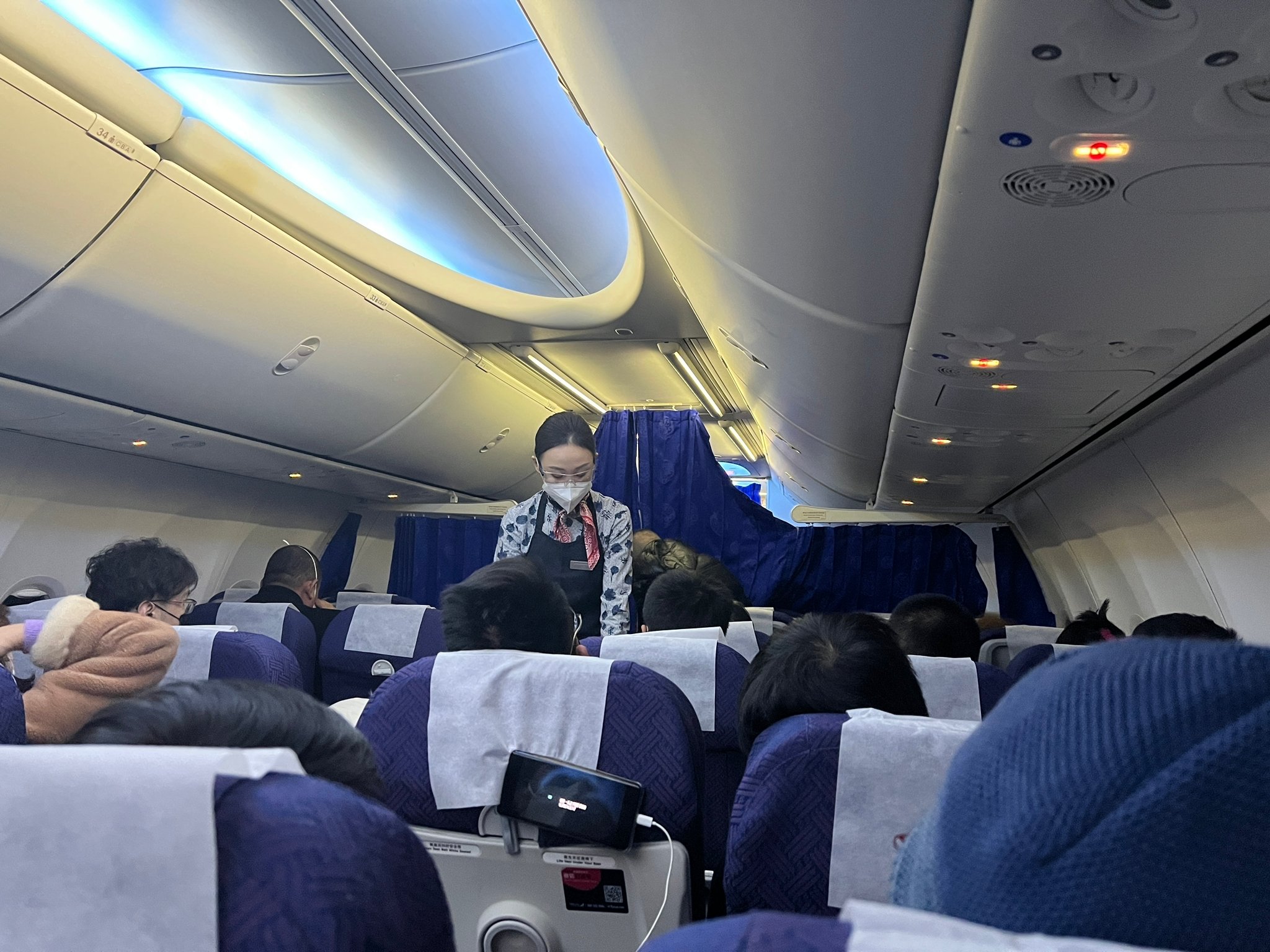 Despite being a low-cost carrier, CUA provide basic beverages for passengers including tea and water free of charge. All passengers were required to wear face masks while cabin crew also wore protective eye glasses.