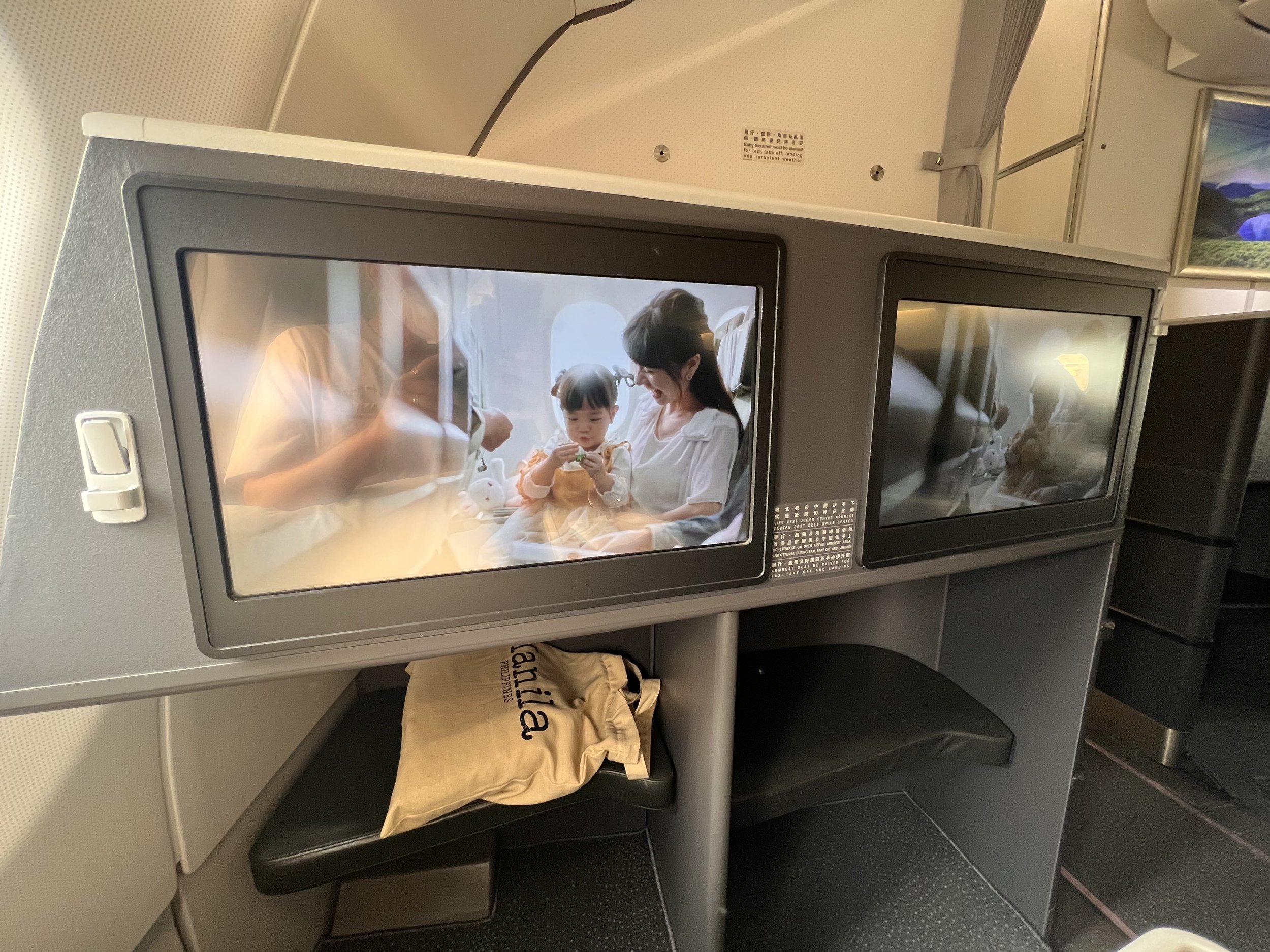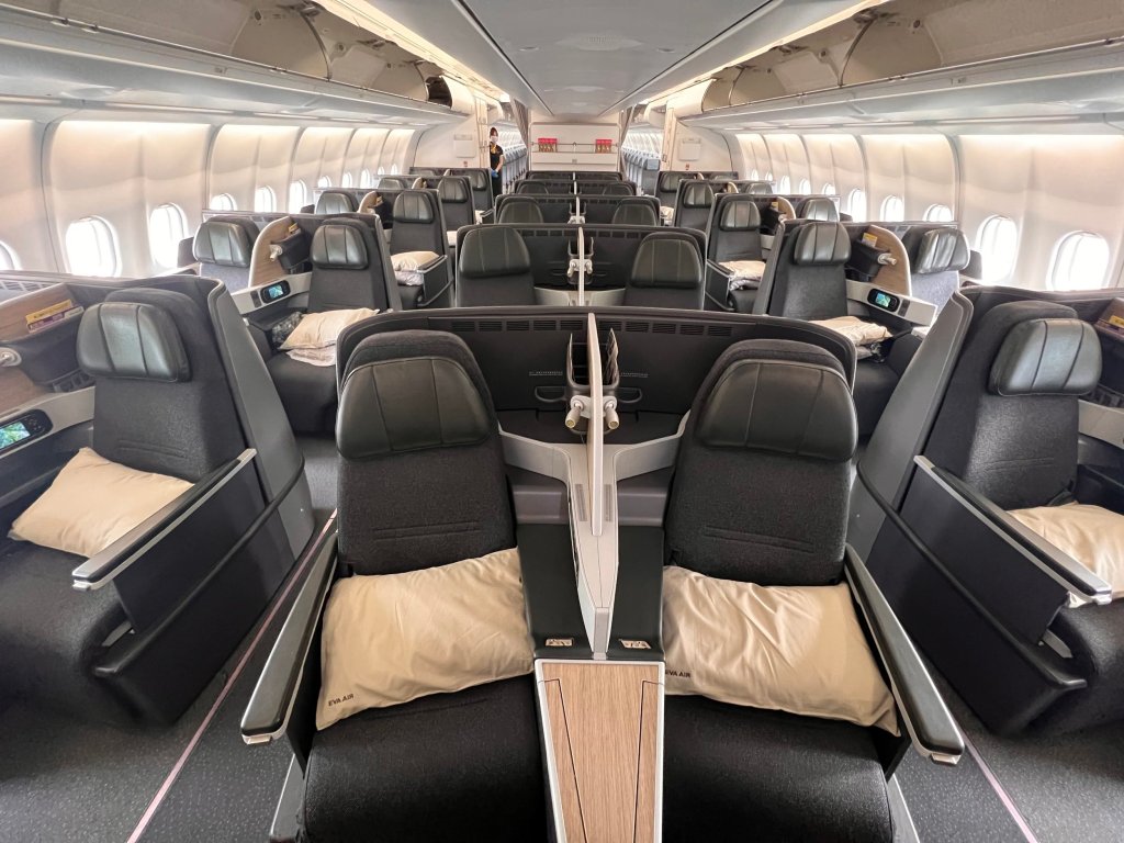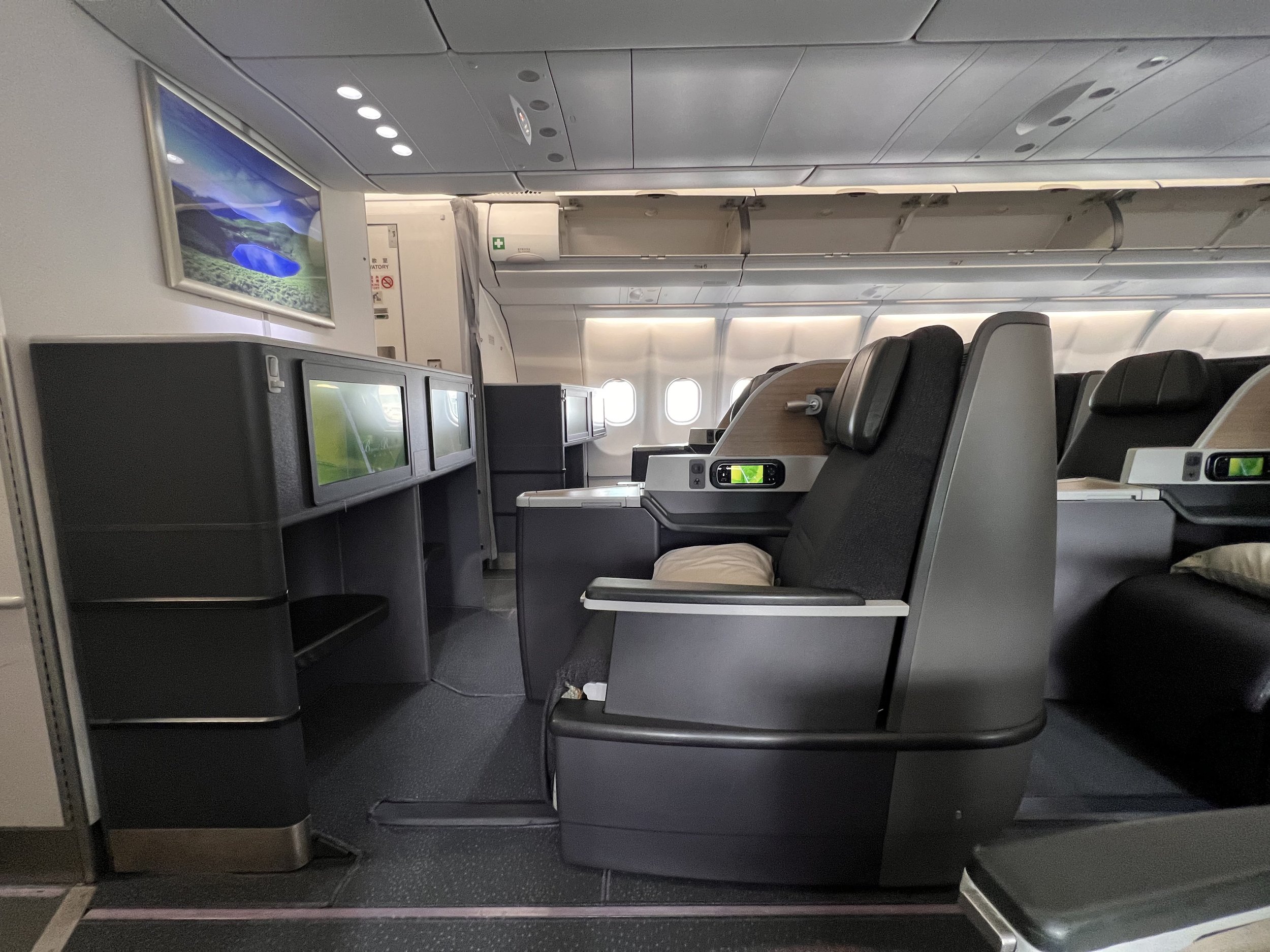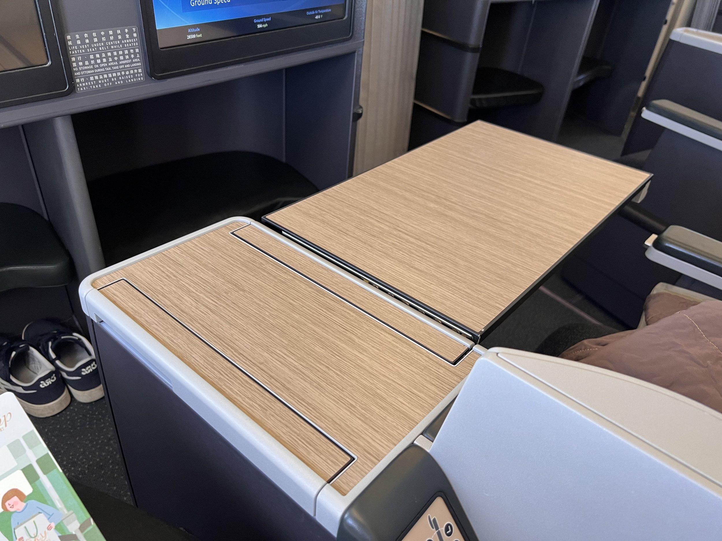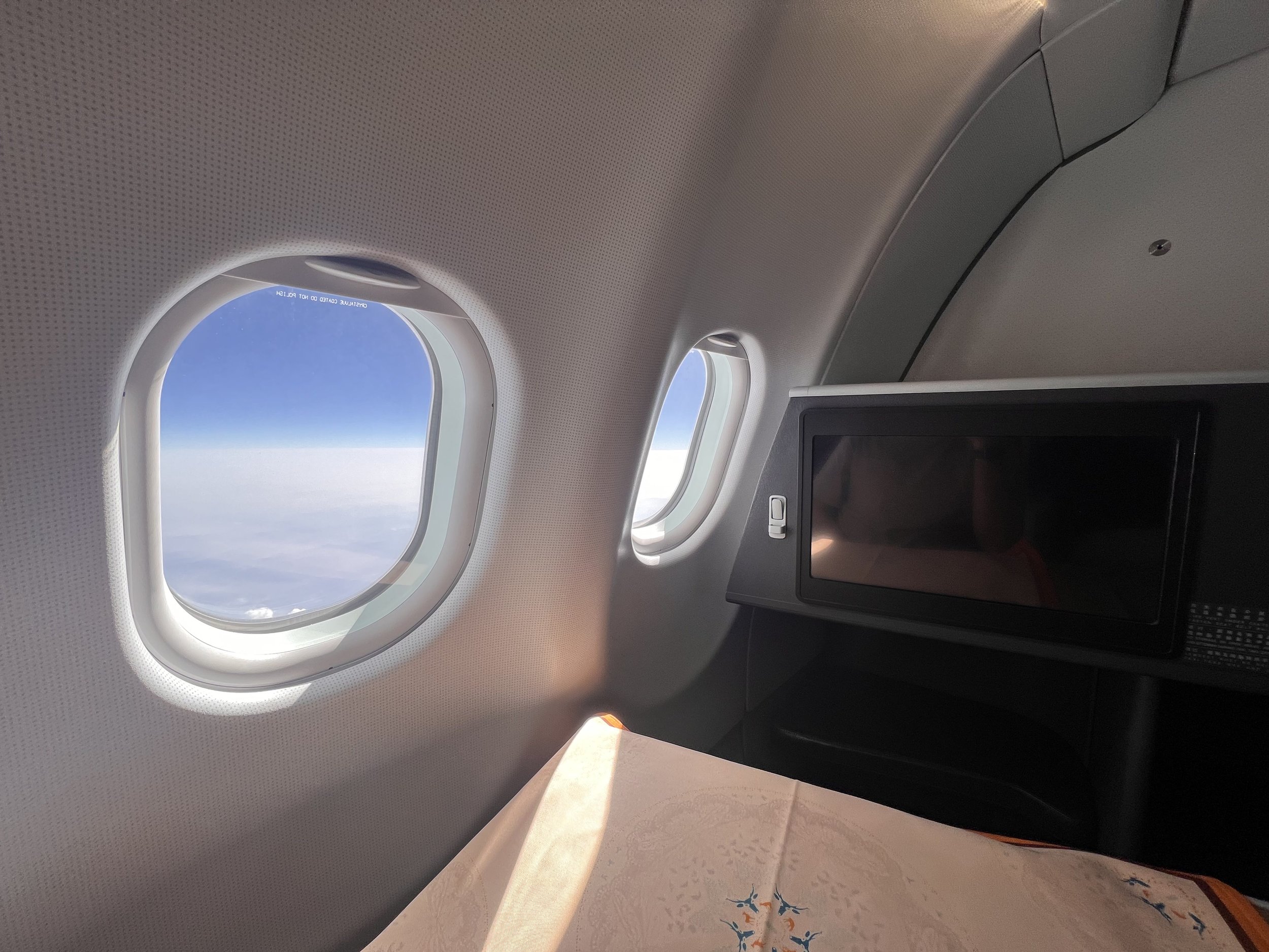 Sitting in row 1 of this aircraft benefits from added space on the ottoman to place your feet while lying down. I recommend opting for this row for the added space on your booking if you available, even more so on a nighttime service.