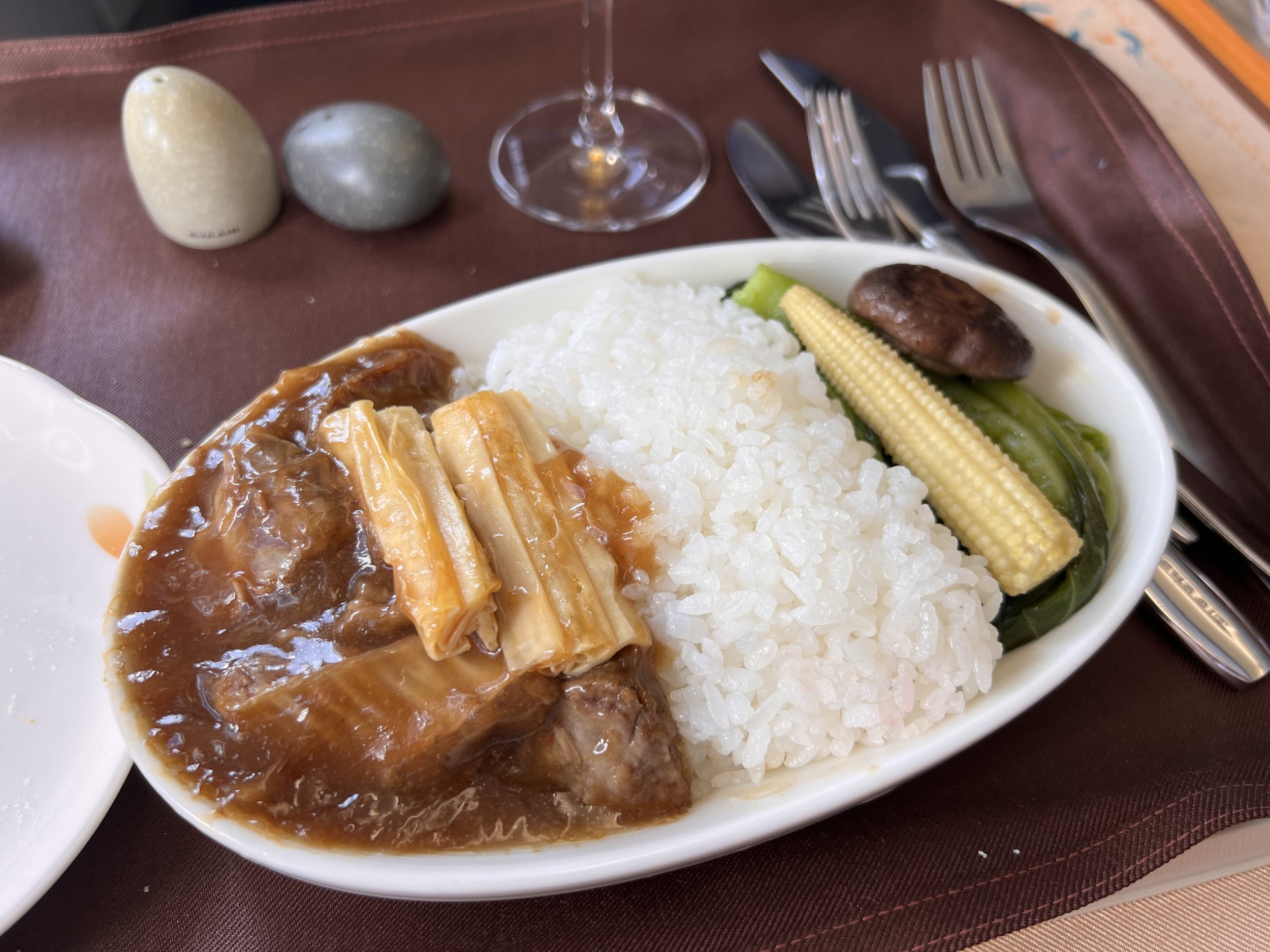 For mains, I opted for a tender beef marrow dish with slices of tofu, sticky rice and steamed vegetables which was full of flavour. This was a lot better than the food options offered at the lounge in Seoul, which had left me hungry.
