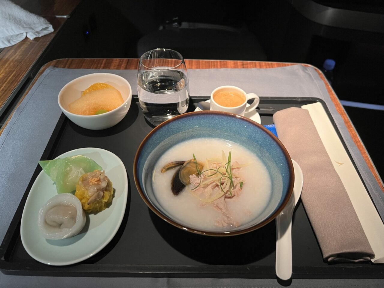 Finally, Cathay Pacific offered no less than five set options for breakfast with the orders taken at the same time as dinner to allow for extra sleep. I selected the Chinese Breakfast since we were flying on a Hong Kong-based carrier and really enjoyed the congee. The Dim Sum was so-so and not the best quality, although it was surprisingly not dry considering the environment it would be heated in. I’m pleased to also say the Illy espresso was well brewed and provided the perfect post-Breakfast pick me up.