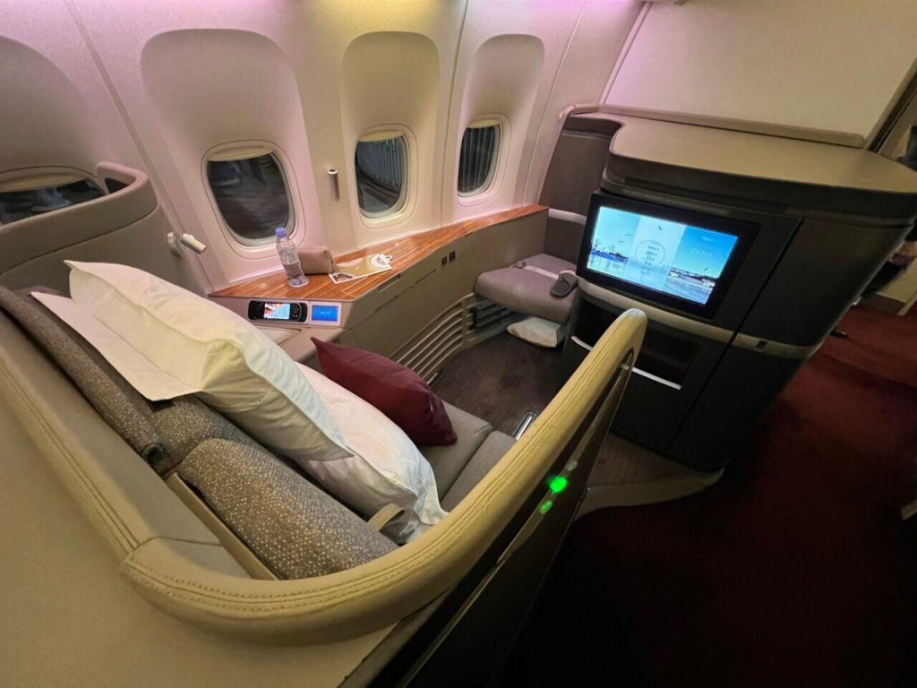 While Business cabins have improved remarkably over the past decade, the one thing that is rarely beaten in First is the unrestricted space for your legs. The ability to turn over or not hit your feet in the footwell is a privilege and part of what makes this seat great.