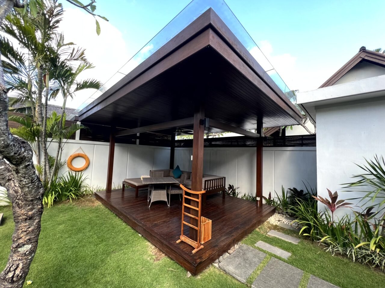 The only minor design quibble involves the television placement. Due to the expansive patio doors, the current location is the only feasible option without obstructing the line of sight. This arrangement means that viewers on the sofa may need to angle their heads slightly to watch comfortably. Nevertheless, considering the plethora of Bali’s outdoor attractions, television watching wasn’t a top priority.