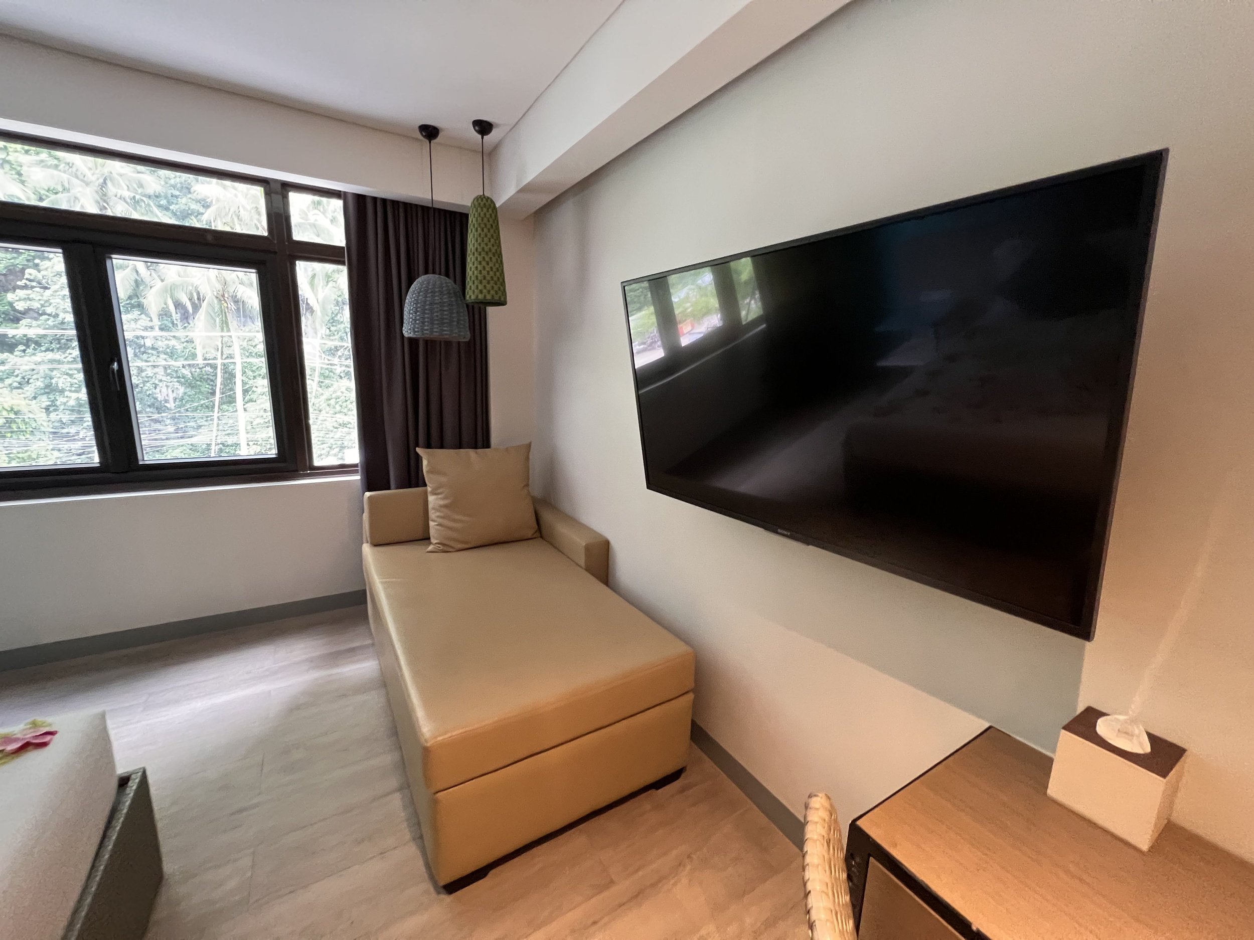 A large internet-connected Sony television can be found on the opposite wall alongside a chaise-longue and desk with chair. Lagun Hotel have done a decent job of fitting out this room.