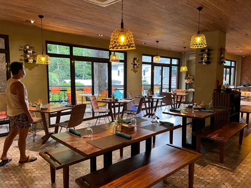 Upon arrival to El Nido airport, you enter through a stylish wooden-clad reception area where there’s several areas for guests to relax. The restaurant, where the buffet breakfast is served, can also be found on the ground floor. We were offered a fruit juice and biscuits upon arrival, a nice and refreshing touch.