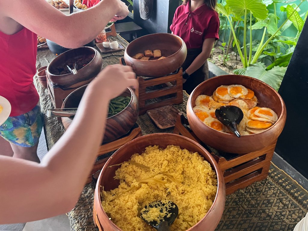 We did not try the evening meal at Warung, as prices were on the expensive side. Breakfast was served as a small buffet on South East Asian essentials – think of rice, eggs and greens for the main portion followed by fresh fruits.