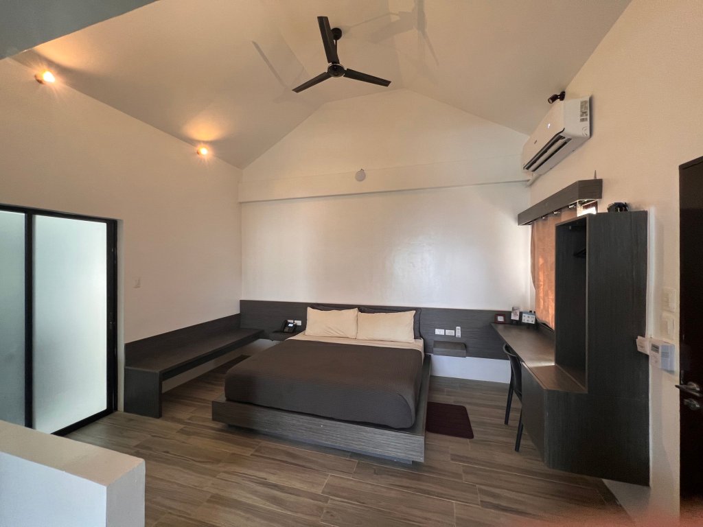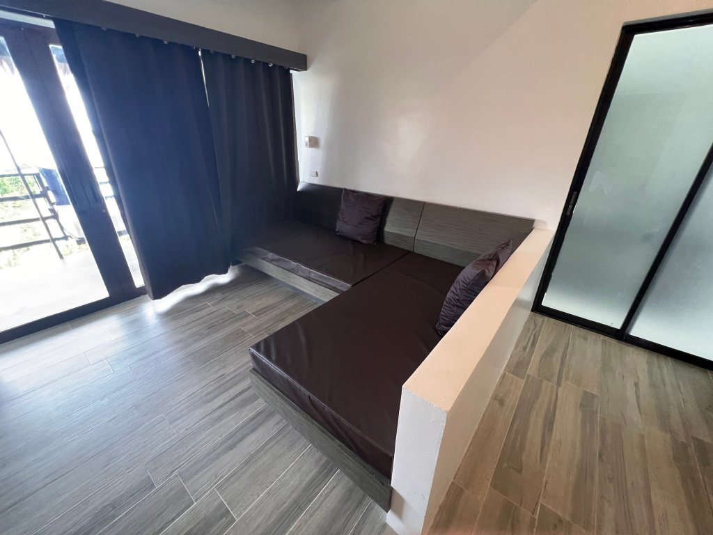 Despite having the second floor, the space felt huge and immediately we felt the effectiveness of the air conditioning installed. To the right, is the sleeping area with a comfortable double bed.